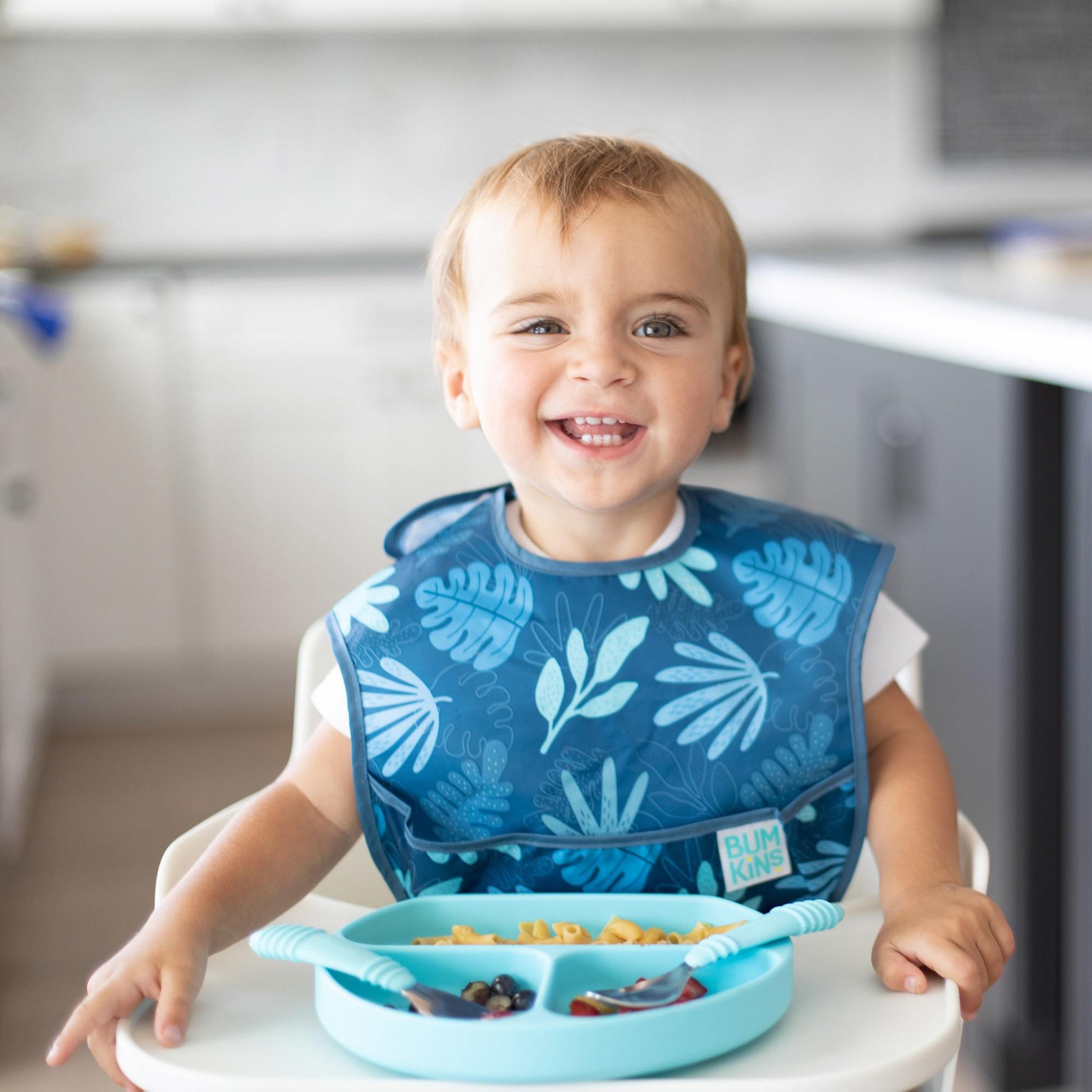 Sit down to mealtime and enjoy this set of three SuperBibs in adorable prints. Each bib attaches over the back of the shoulder with hook-and-loop closure for a quick, adjustable, and tug-proof fit and features a large catch-all pocket to help contain spills, crumbs, and more. The SuperBib is made from Bumkins’ lightweight, durable, waterproof fabric that is resistant to stains and odors. Its single-ply construction means no worrying about icky stuff growing between layers of fabric. Wipeable and machine washable, this bib is easy to clean, and a pack of three ensures you always have a clean one handy!