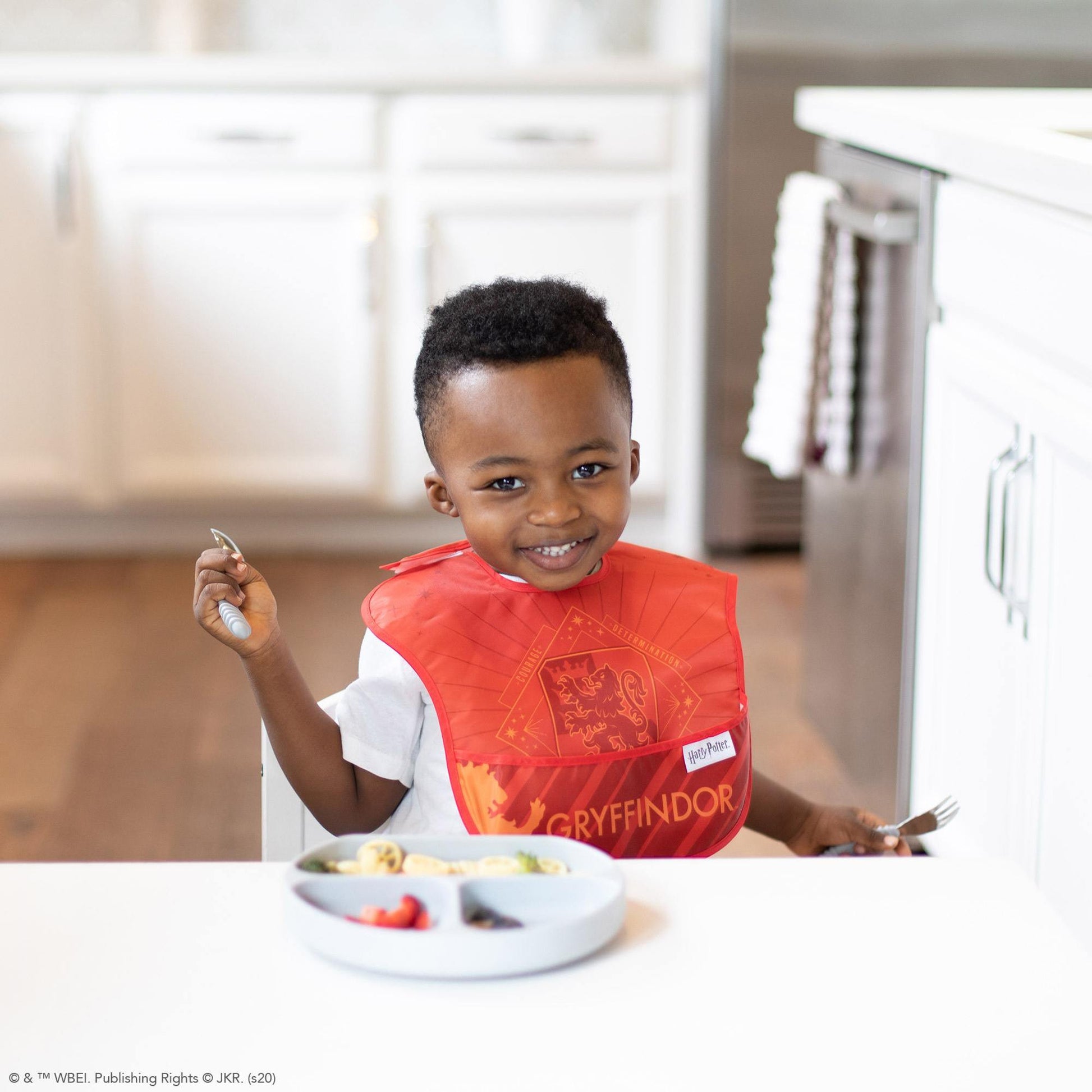 "Your a wizard, baby!” The SuperBibs feature designs and characters inspired by J.K. Rowling’s world of witch and wizardry (and they’ll save you from the mess!) The bibs attach over the back of the shoulder with hook and loop closure for a quick, adjustable and tug-proof fit. With a handy crumb catcher / catch-all pocket for containing spills. Made from Bumkins lightweight, waterproof, easy-wipe, stain and odor resistant fabric. Single-ply construction means no worrying about icky stuff growing between layers of fabric. Without a cotton layer, stains and smells don't stick. Wipeable and machine washable for easy cleaning so you can use it over and over again. A pack of 3 ensures you have a clean one handy!