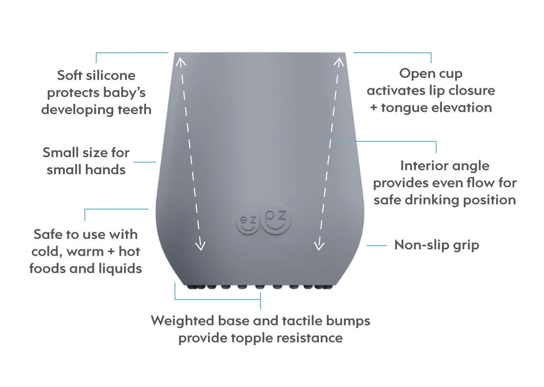 Learning to drink out of an open cup is an important developmental milestone. The Tiny Cup is designed to help with that process. Designed for babies 6+ months.