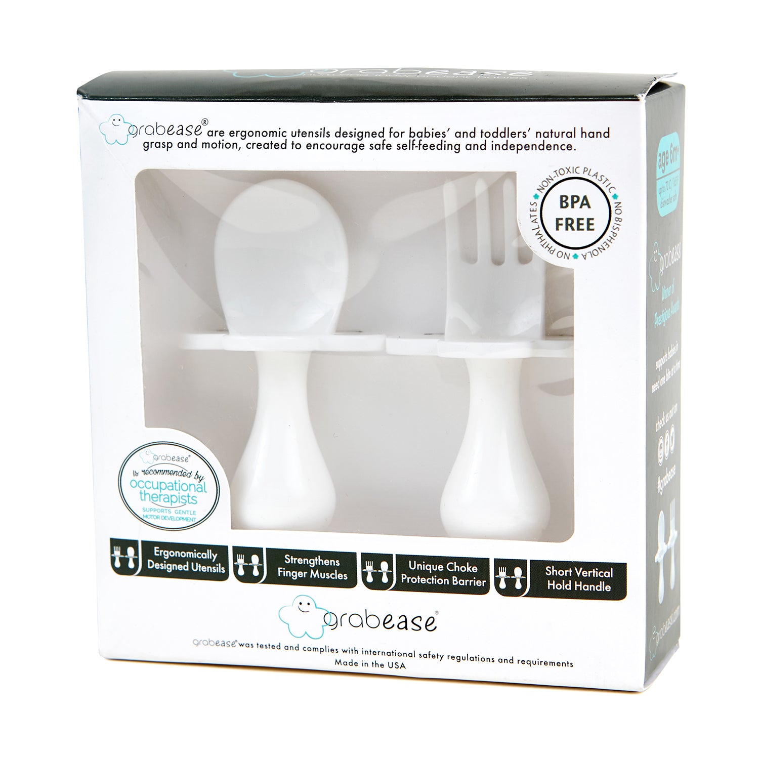 Make self-feeding easier with the Grabease baby-sized self-feeding fork and spoon set. Perfect for those independent feeders. Easy to use for babies and toddlers from 6 months.