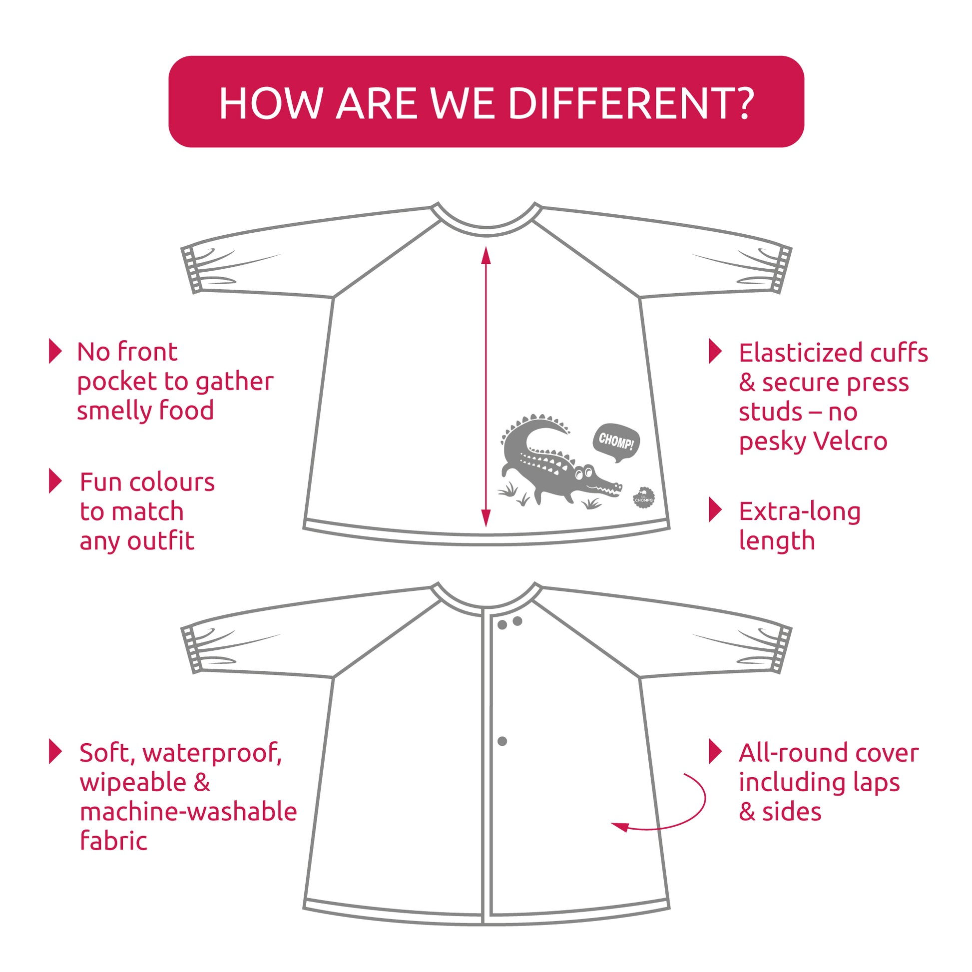 So much more cover than a simple silicone bib or bib with sleeves, it’s perfect for baby-led weaning and self-feeding babies!