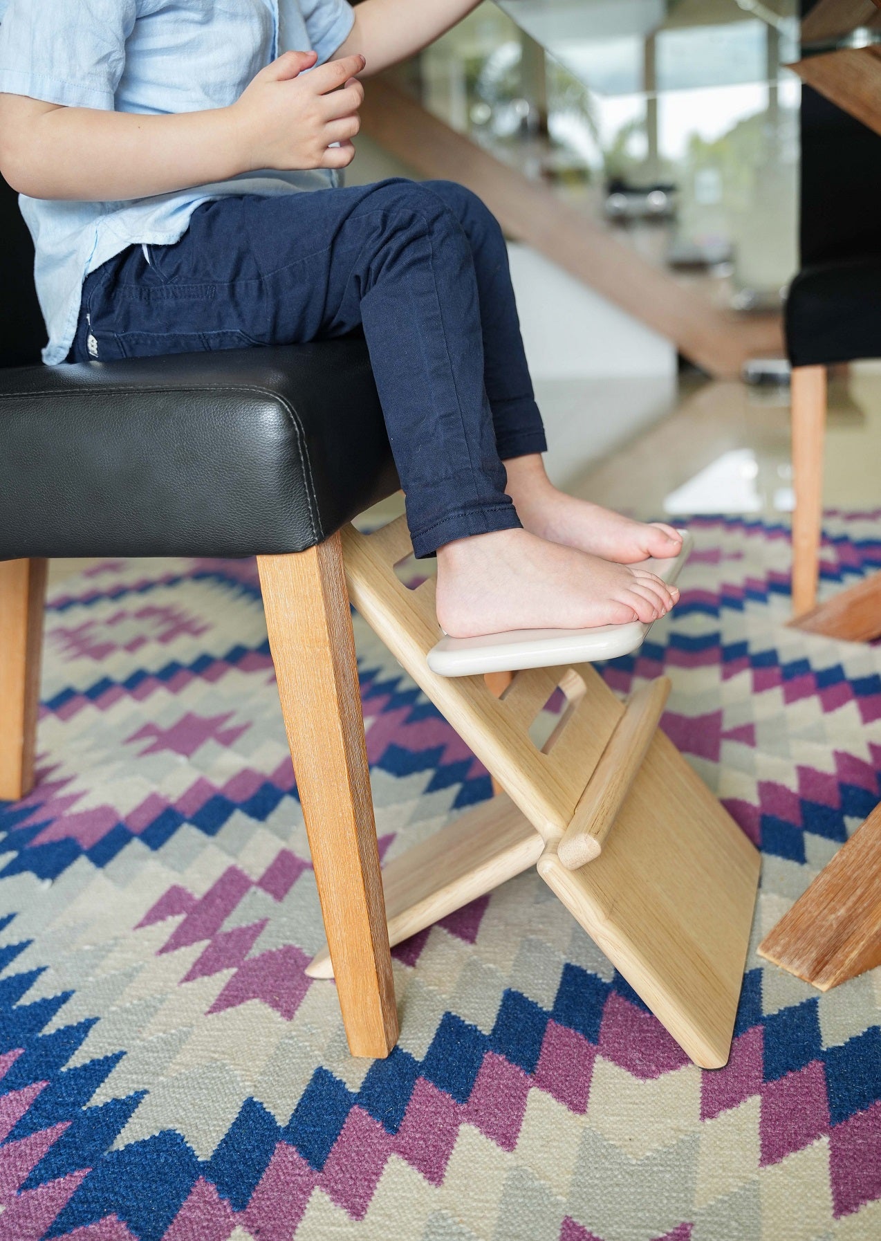 The Nibble & Rest Footsi Grow™ is a height adjustable children’s footrest. The first of its kind worldwide, this footrest has been designed for children aged 3 to 9 years old. The product has been created with the intention of allowing your child to thrive at any task at hand while sitting at a dining chair, desk chair or even bar stools by providing them fundamental foot support.